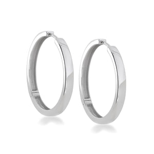 Our large square edged sterling silver hinged hoops are the essential hoop earring. High quality, sturdy hinges allow the hoops to open and be put in the ear easily without twisting or misshaping the earring. Closing with a satisfying click, the fastening is strong and secure. A classic shape and highly polished finish makes these the ideal earrings to match any of your existing jewellery. Smart, sleek and professional, these hoops are the ideal earring for every day wear.