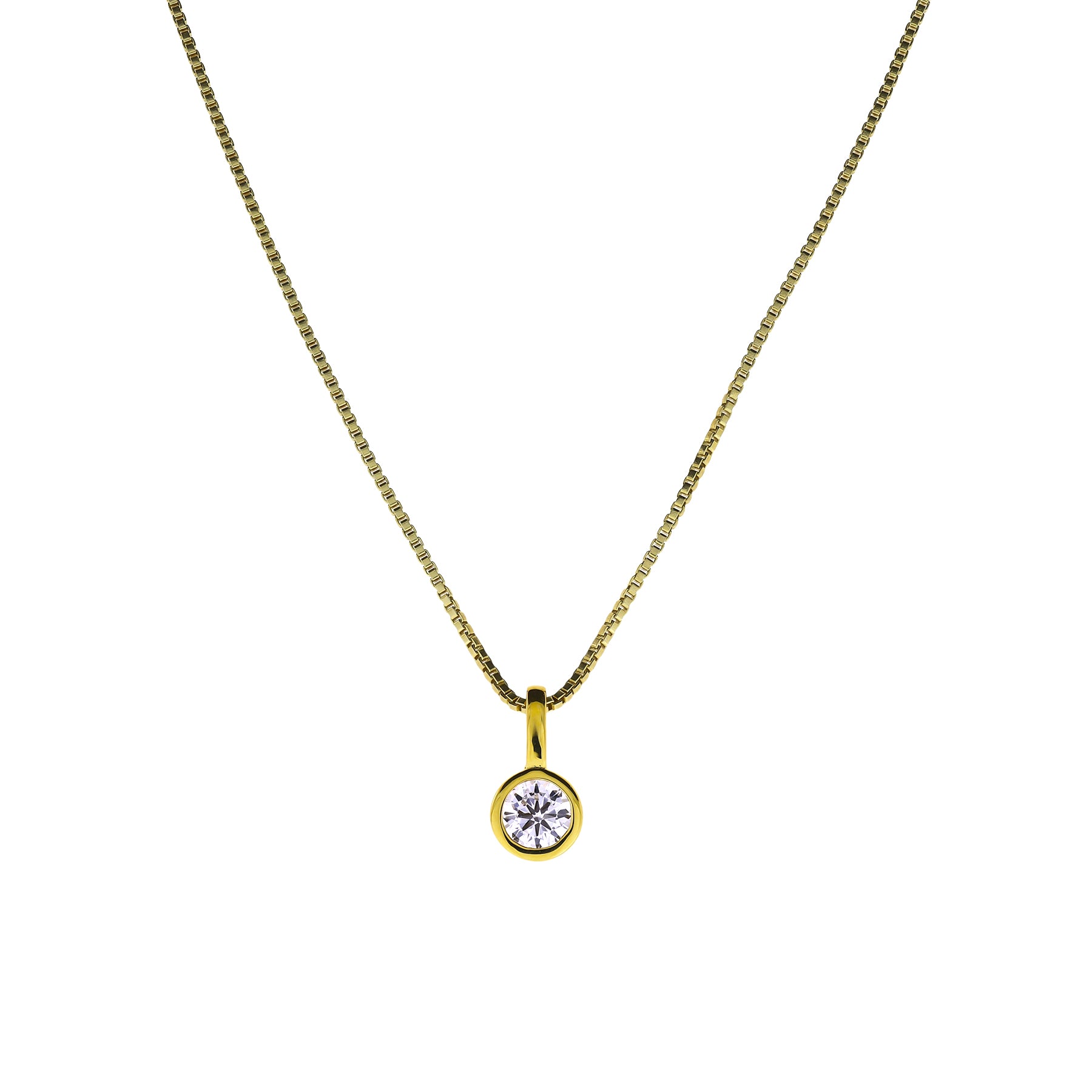 This beautiful, classic solitaire pendant features a bright and sparkling white 0.25 carat lab grown diamond in a polished gold vermeil setting.