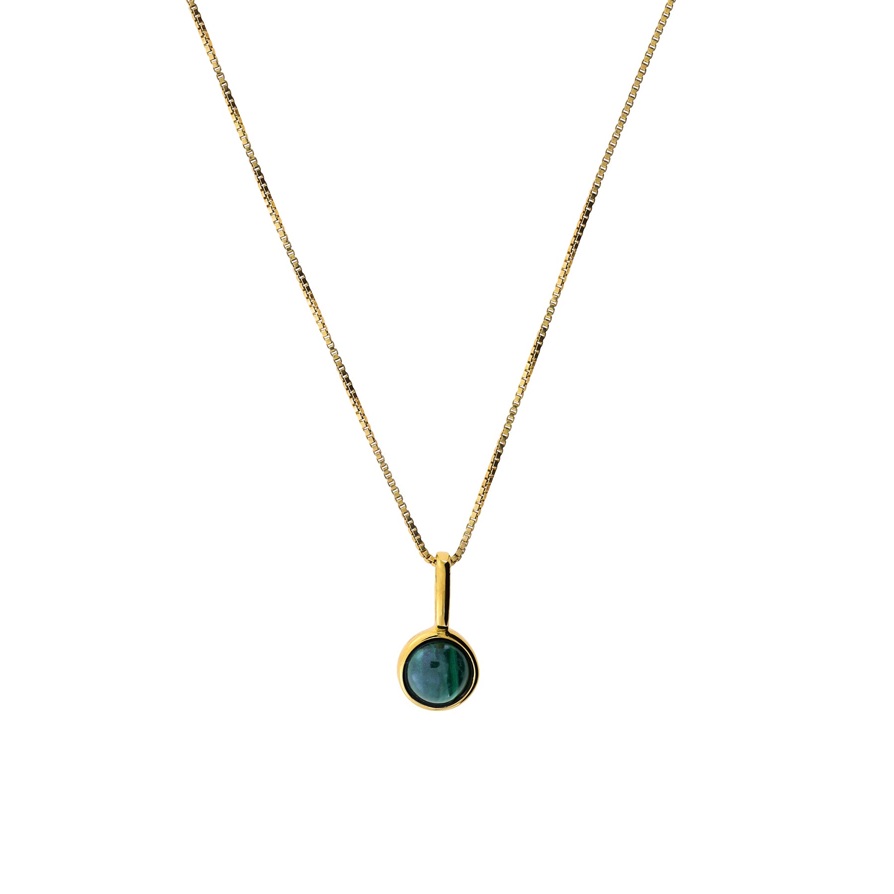 This simple, polished gold vermeil surround is the perfect setting to show off the deep green tones of the beautiful Malachite gemstone.