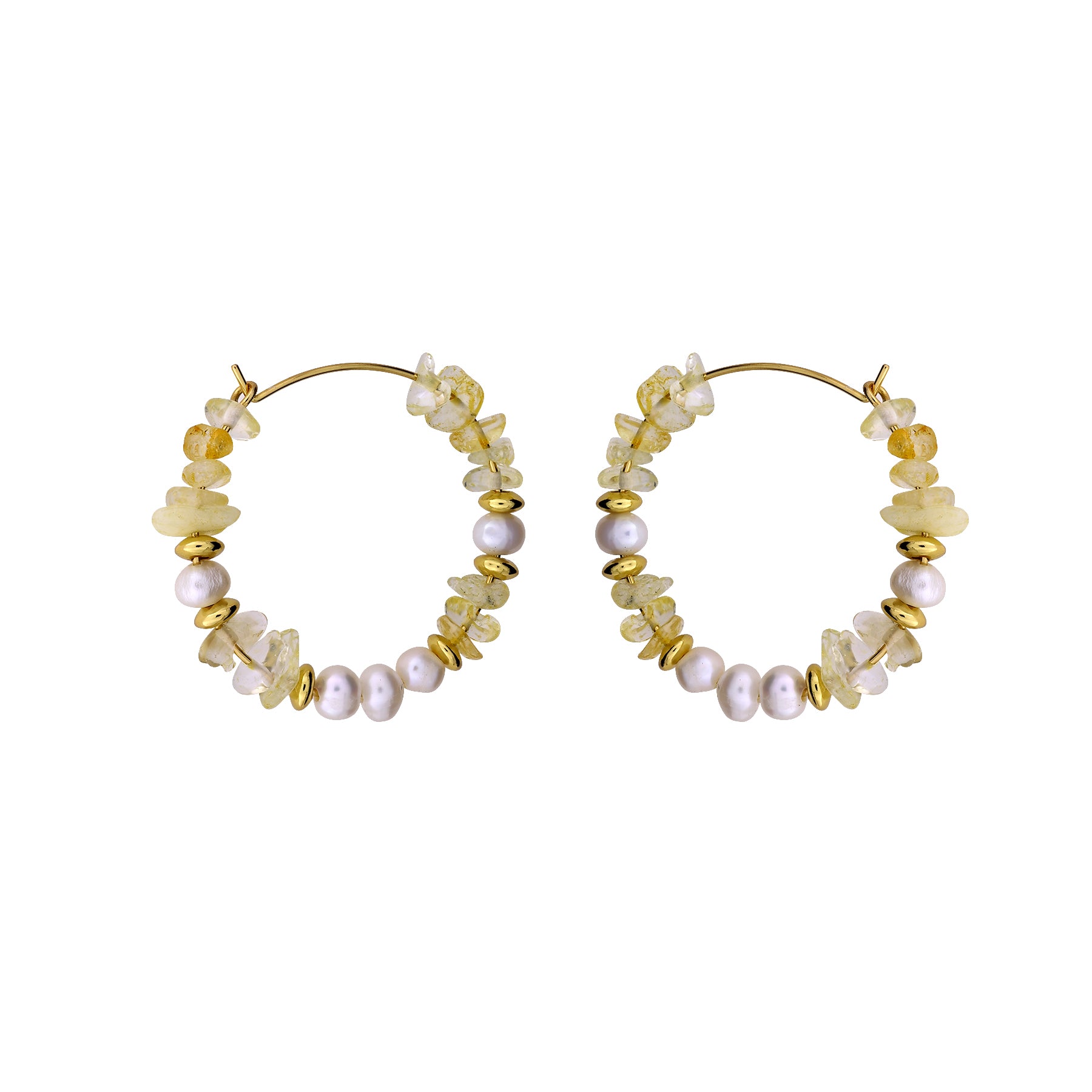 These dramatic drop earrings feature textured beads of gold vermeil threaded with tumbled aventurine gems.