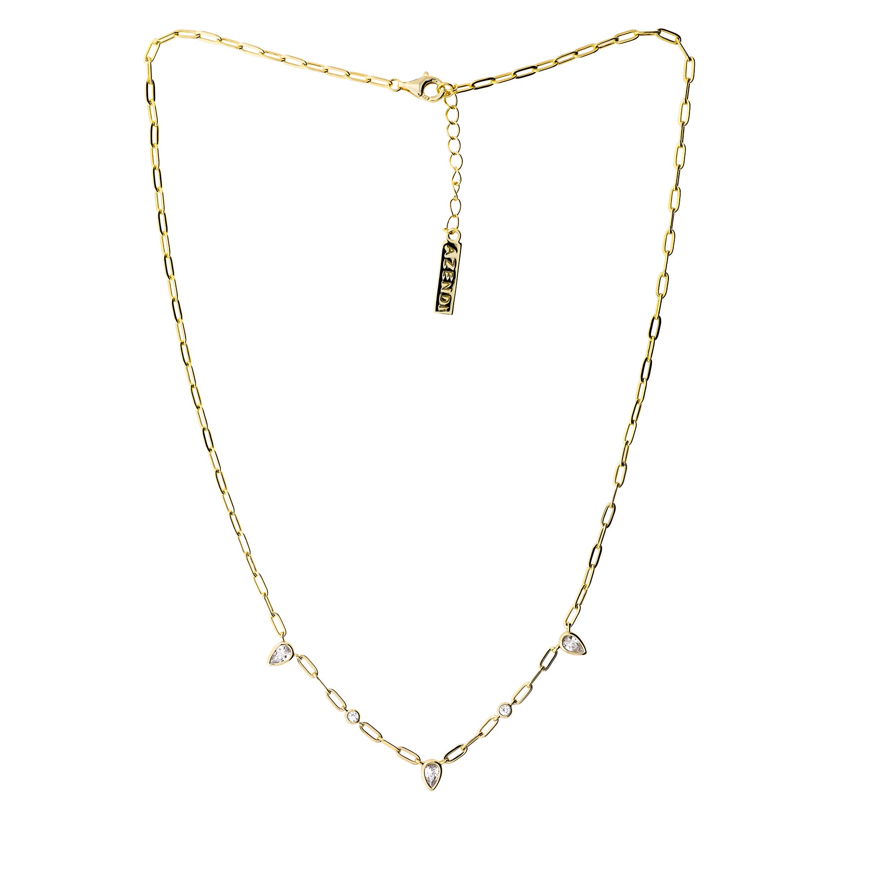 A pretty combination of on-trend longlink chain and sparkling cubic zirconia stones.