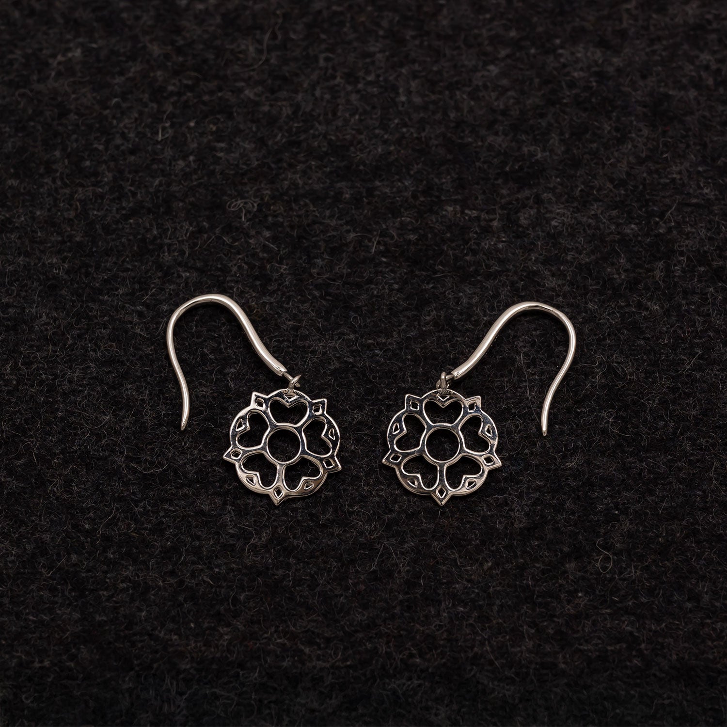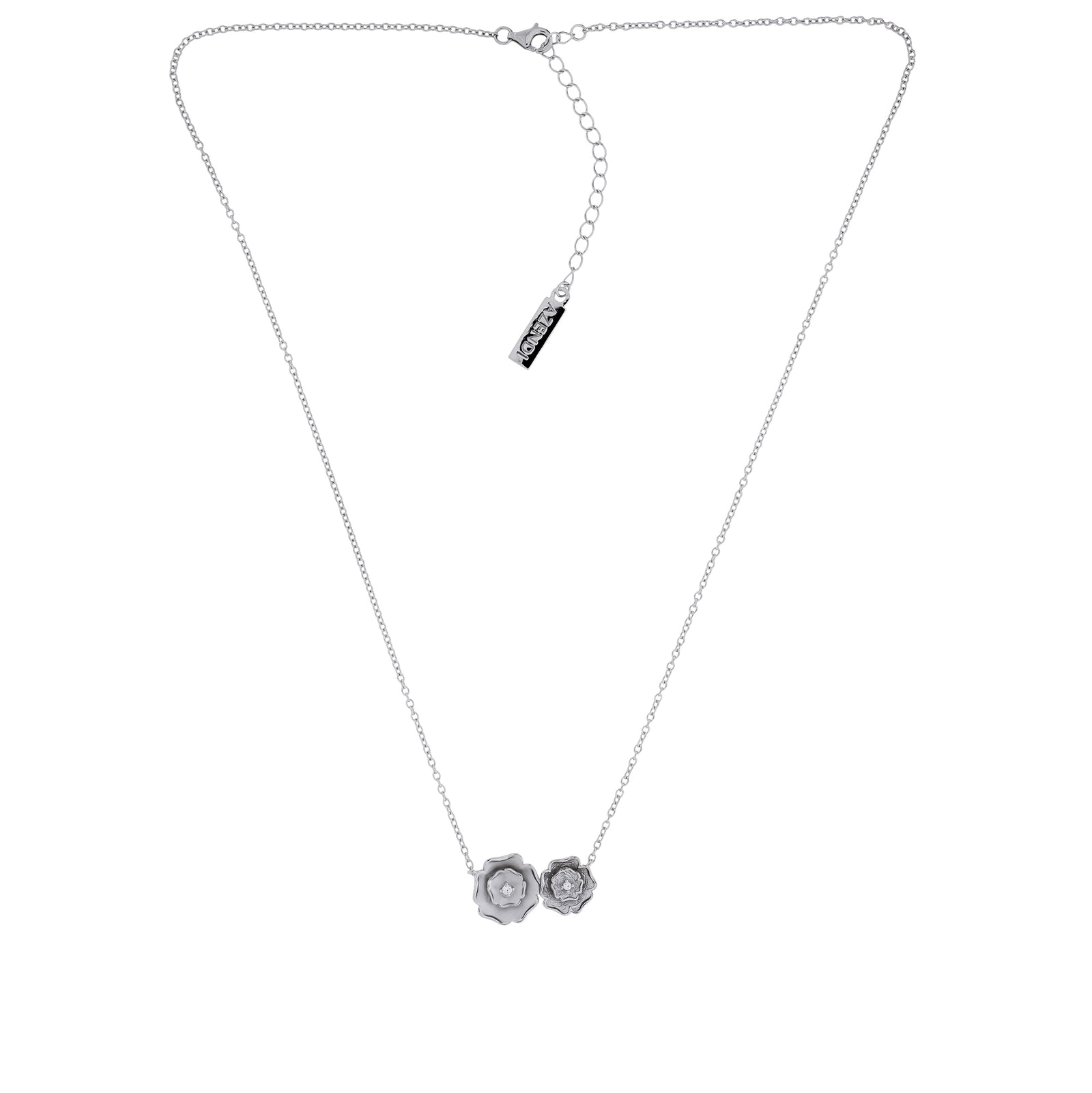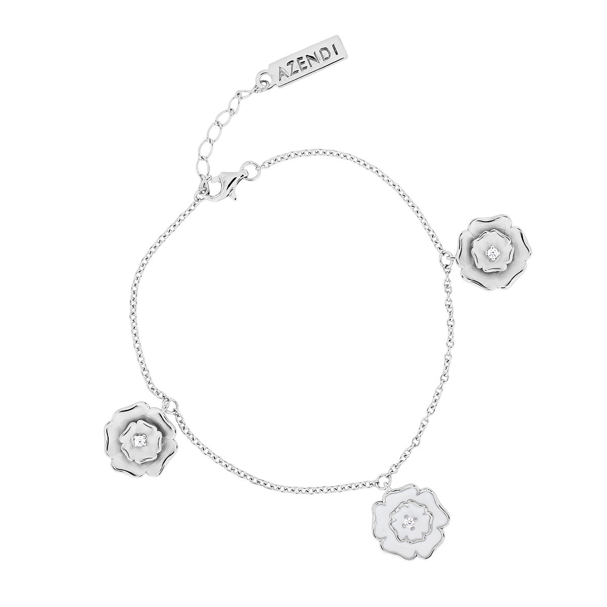 A white Rose of Yorkshire is set in sterling silver with pavé cubic zirconia.