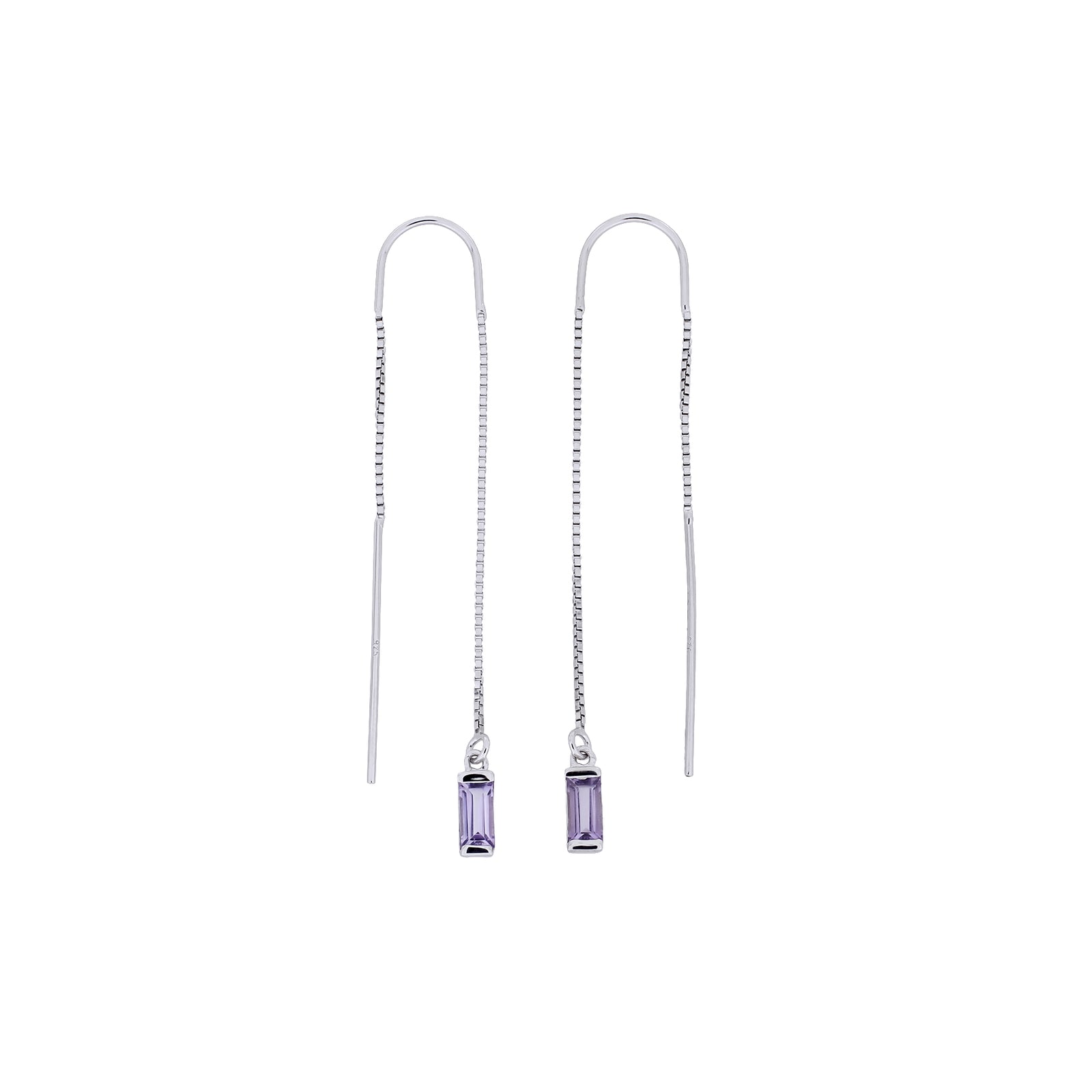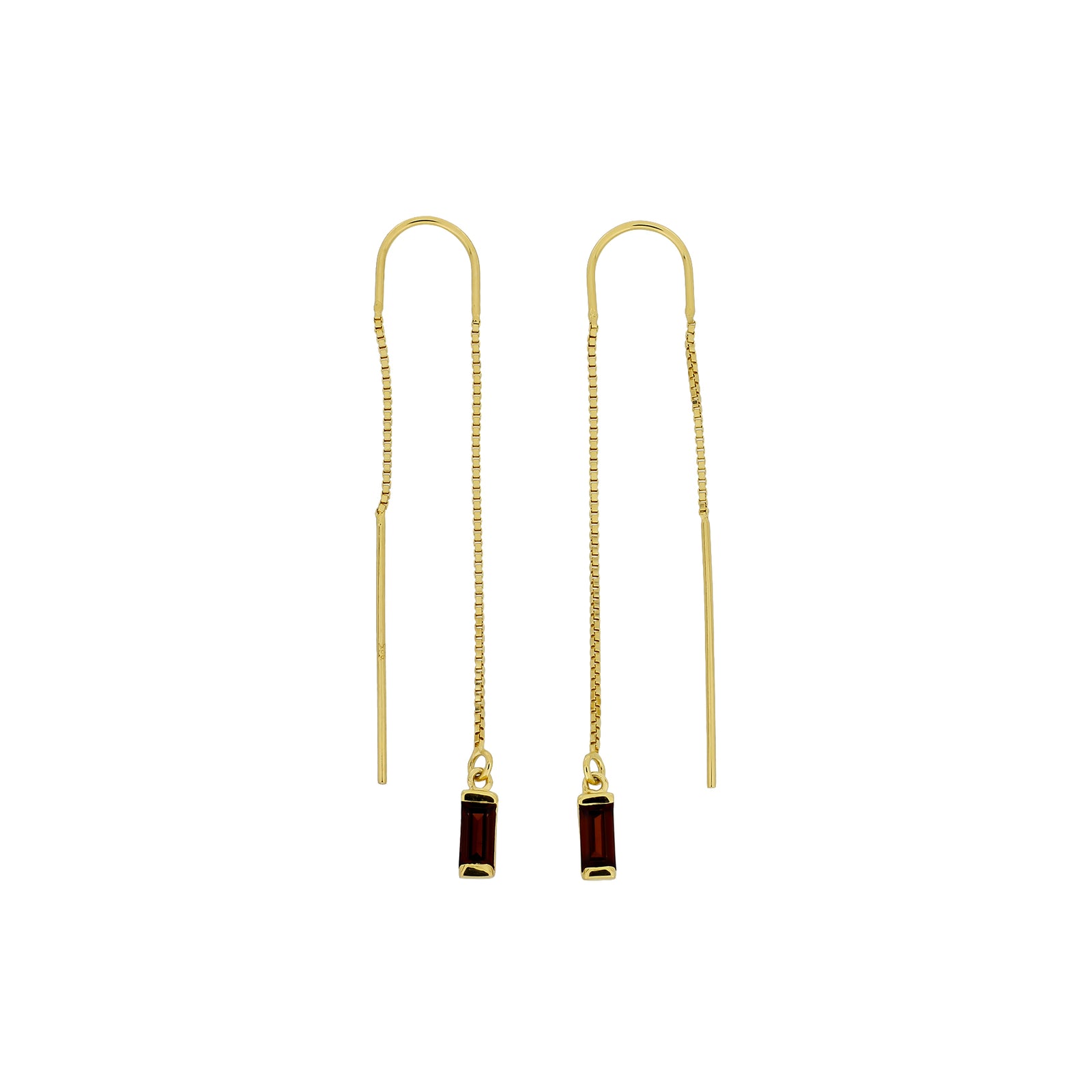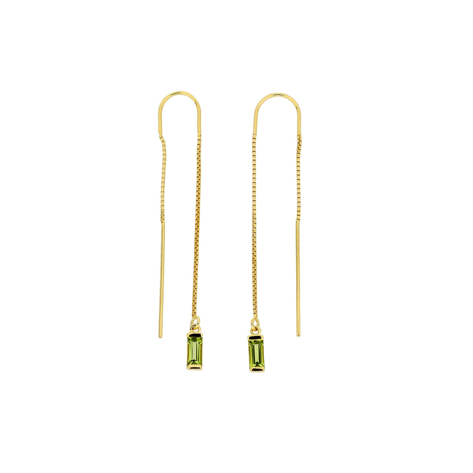 These threader earrings feature fresh green baguette-cut peridot gemstones hanging from a fine gold vermeil chain.
