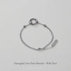 Three complete circles intertwine to create a never-ending love-knot, with one circle exquisitely set with pavé stones. The knot sits centrally on a double strand of highly polished belcher chain.