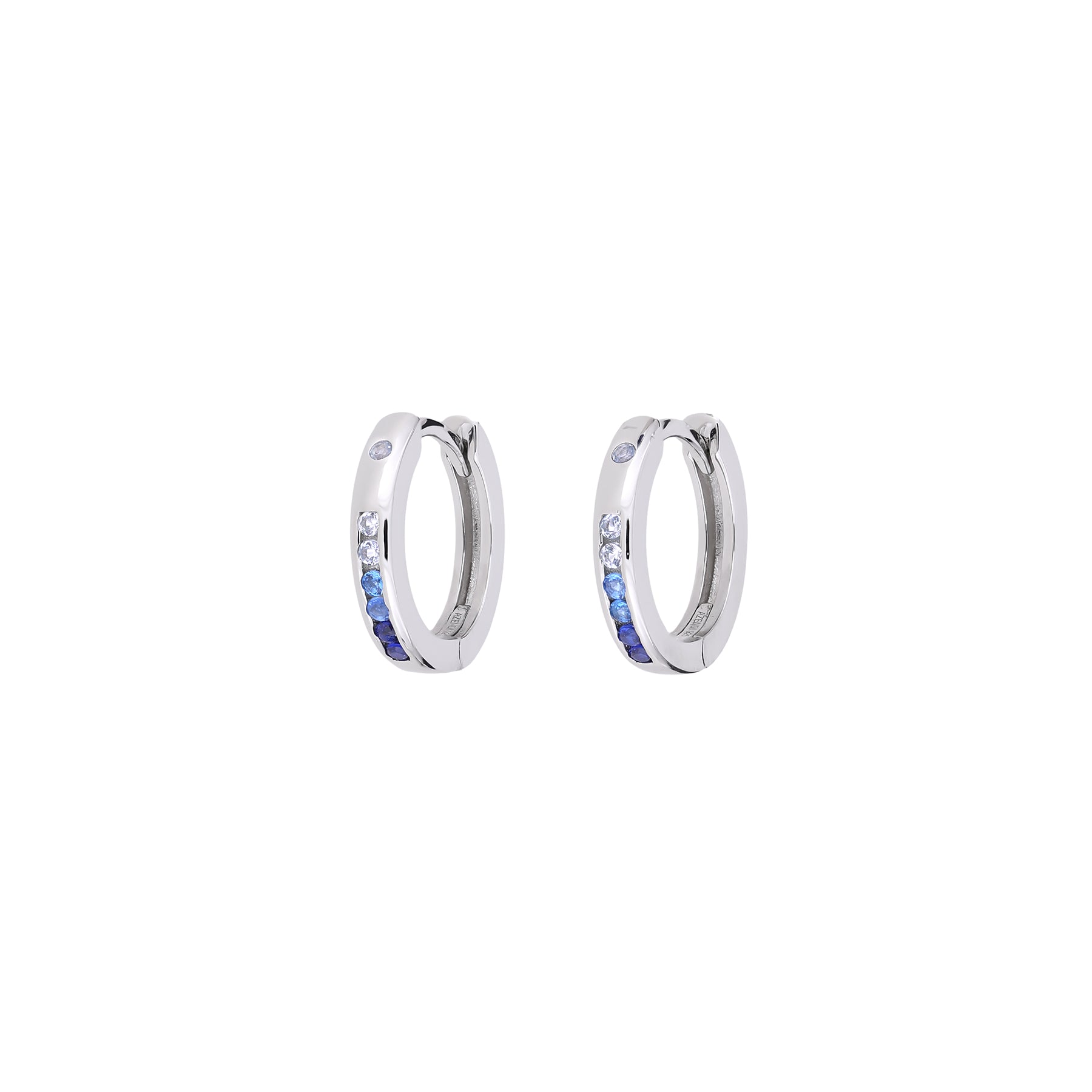 Sterling silver hinge hoop earrings with ombre blue cubic zirconia stones.