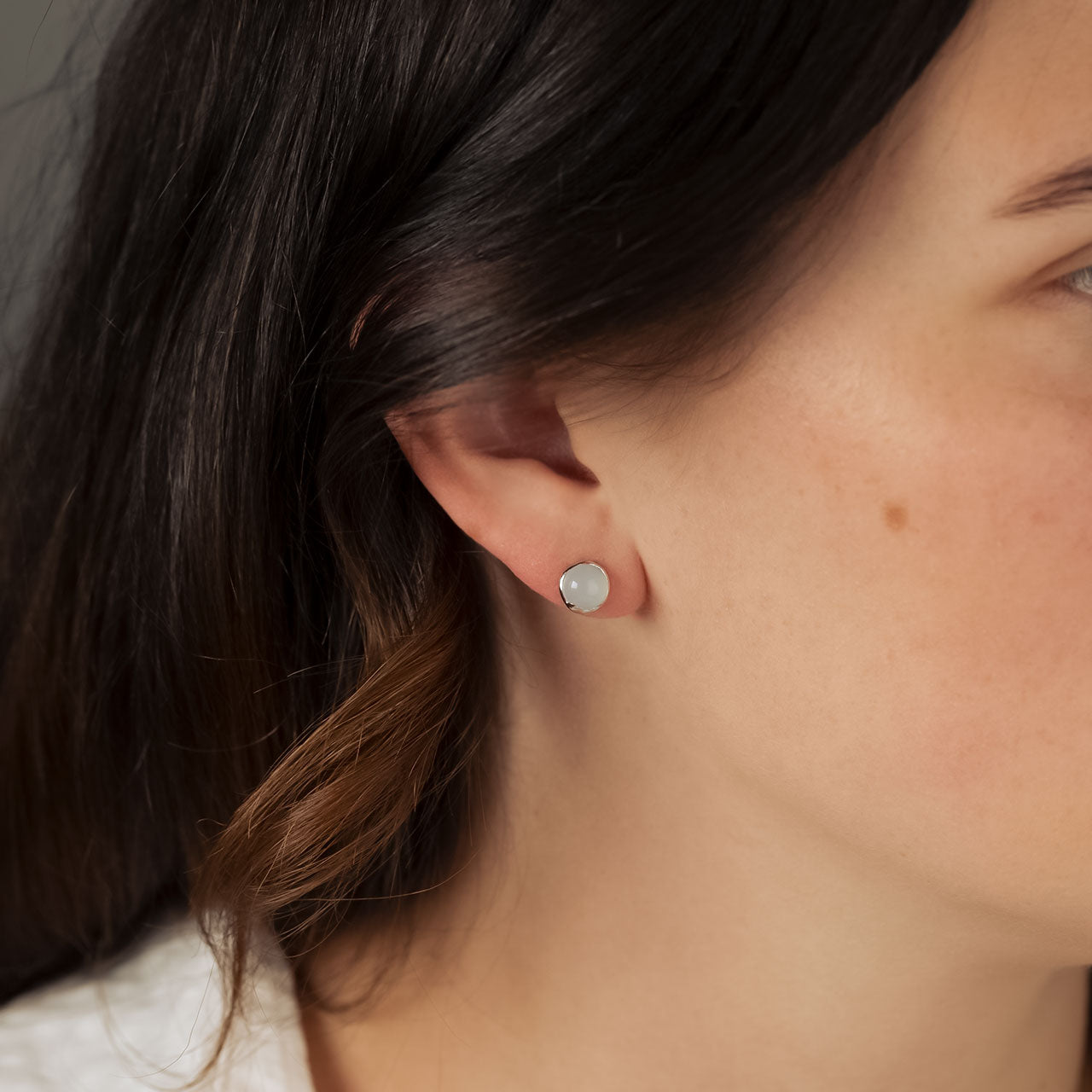 Polished cabochon cut aqua chalcedony stones are set in sterling silver to form these beautiful studs earrings.