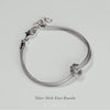 This bracelet is formed from sterling silver woven mesh looped into the perfect central knot.