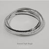 The three interlocking circles of sterling silver in this bangle feature hammered and polished textures. The interlocking bands combine to form a single bangle.