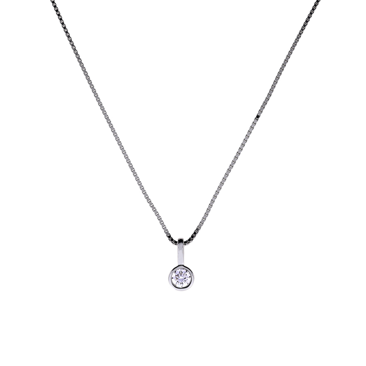 This beautiful, classic solitaire pendant features a bright and sparkling white 0.15 carat lab grown diamond in a polished sterling silver setting.